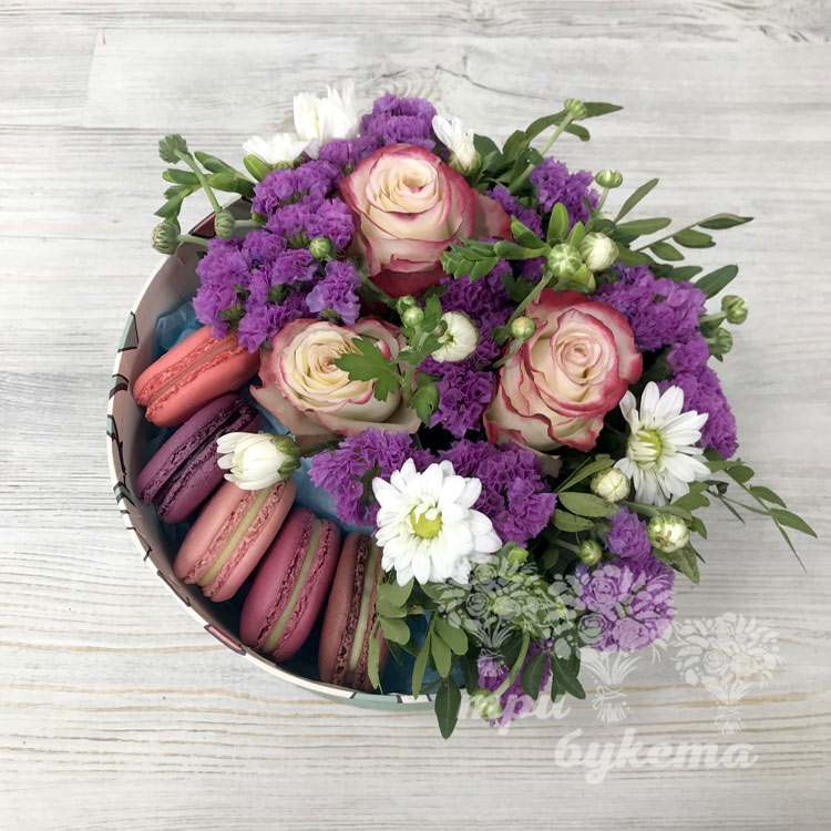 5 макарун с розами и хризантемой