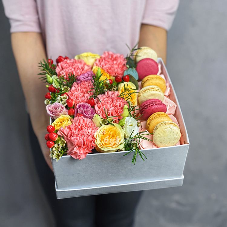 7 макарун с розами и гвоздиками