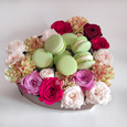Альстромерии и розы в ящичке