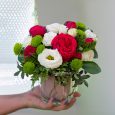 Белые розы и эустомы в коробке
