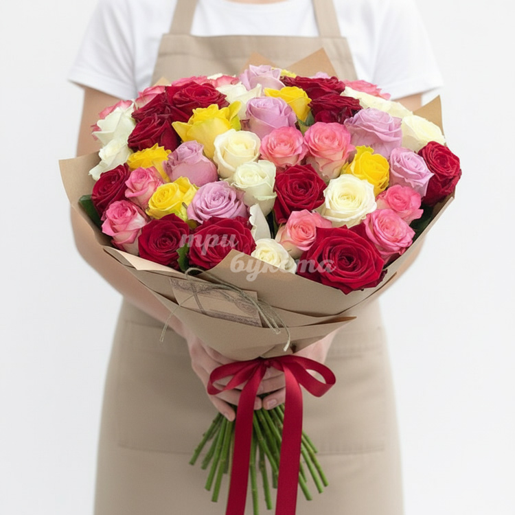 Букет из 51 розы в крафте