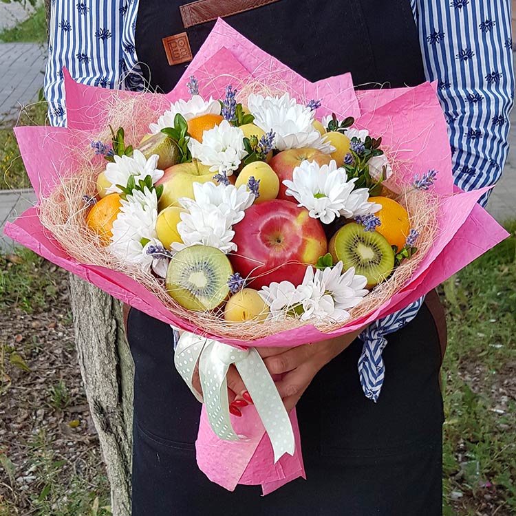 Букет из фруктов и хризантем