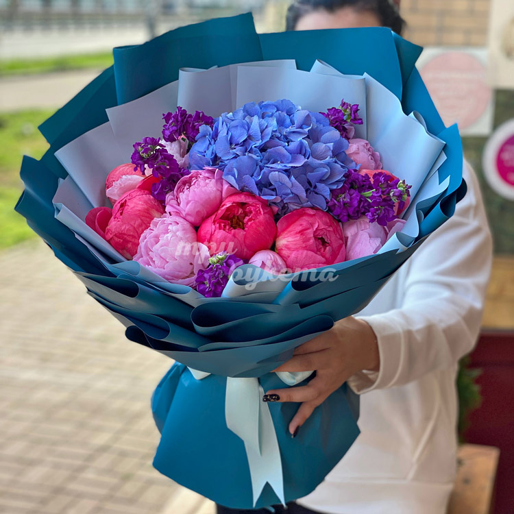 Букет из пионов и гортензий