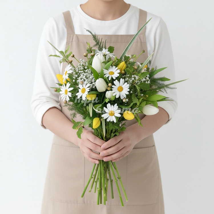Букет из ромашек и тюльпанов