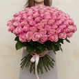 Букет из розовых роз и диантусов