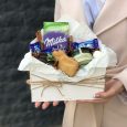Эустомы и макаруны в коробке