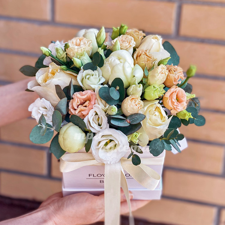 Эустомы и розы в коробке