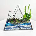 Флорариум с синими камешками, мхом и суккулентом