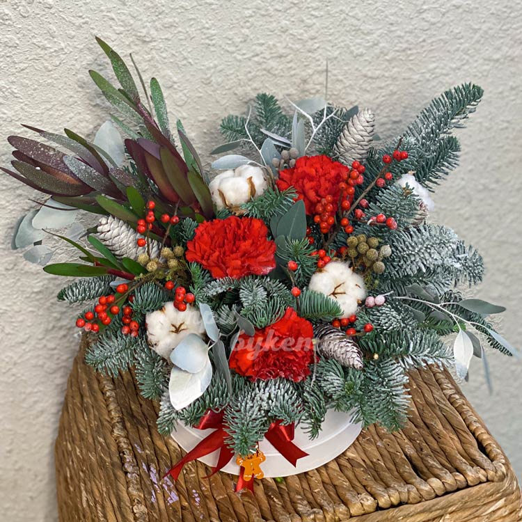 Гвоздика и бруния в хвойных ветках