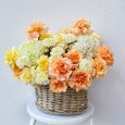 Кашпо бордовых, розовых и оранжевых роз