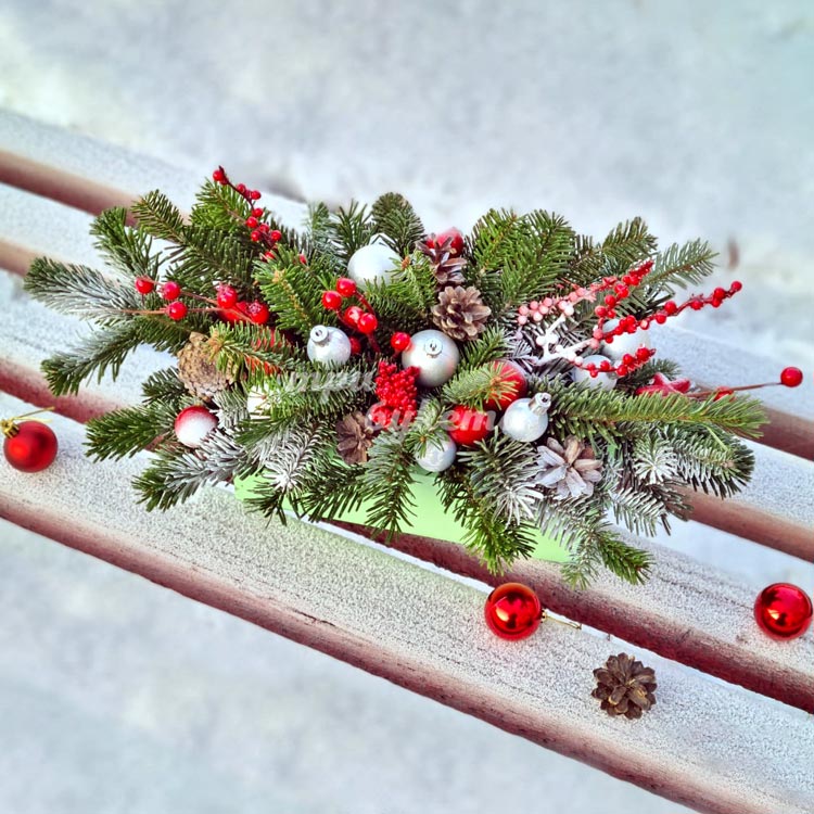 Композиция еловых веток и украшений
