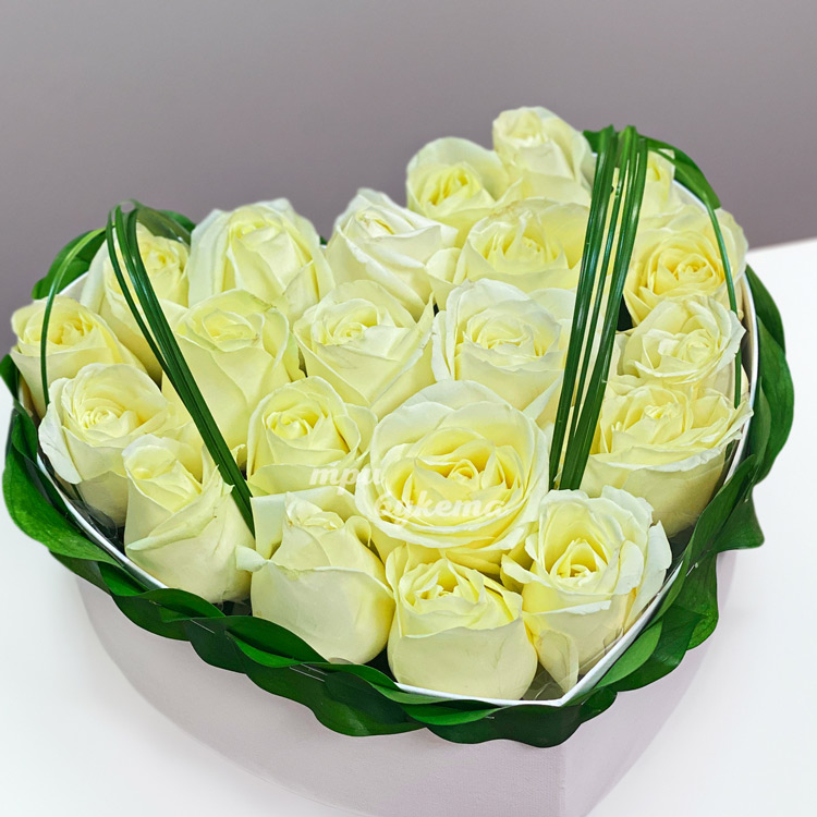 Композиция сердце из белых роз