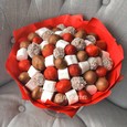 Коробка из эустом, сирени и макарунами