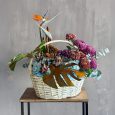 Корзина роз с хризантемами и аспарагусом