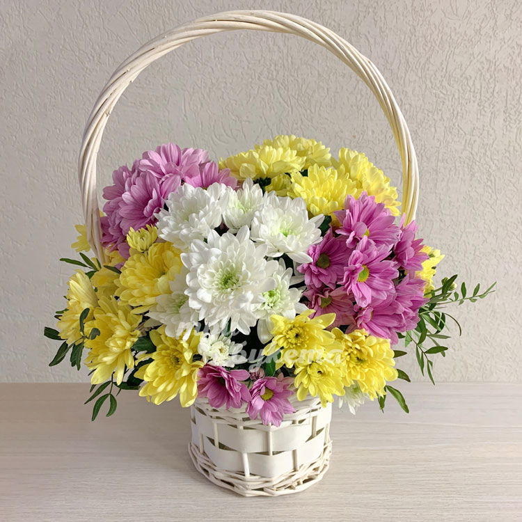 Корзинка разноцветных хризантем