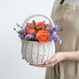 Орхидеи с розами и эустомами в корзине