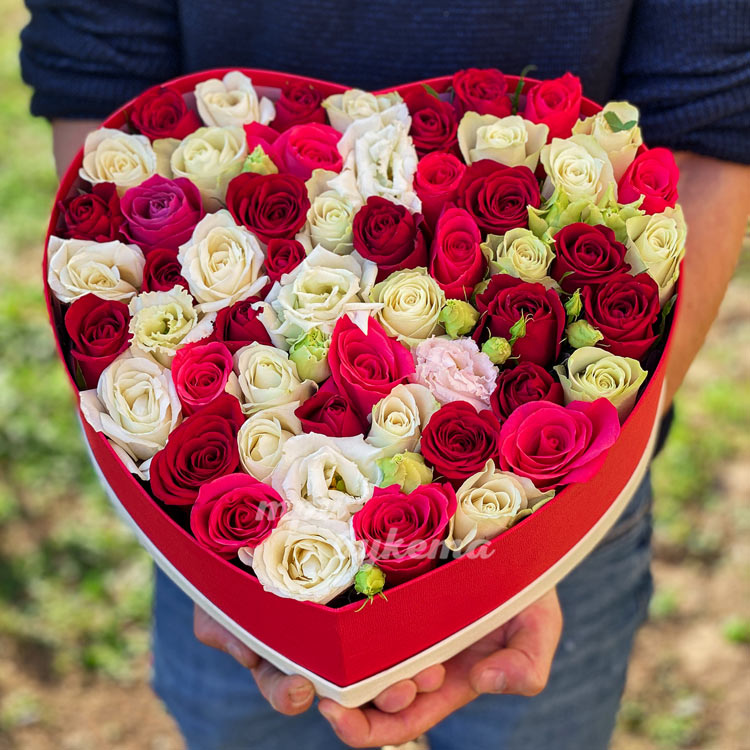 Сердце из разноцветных роз